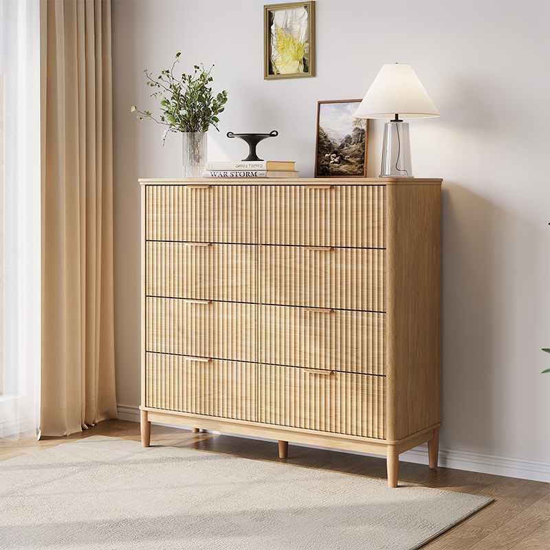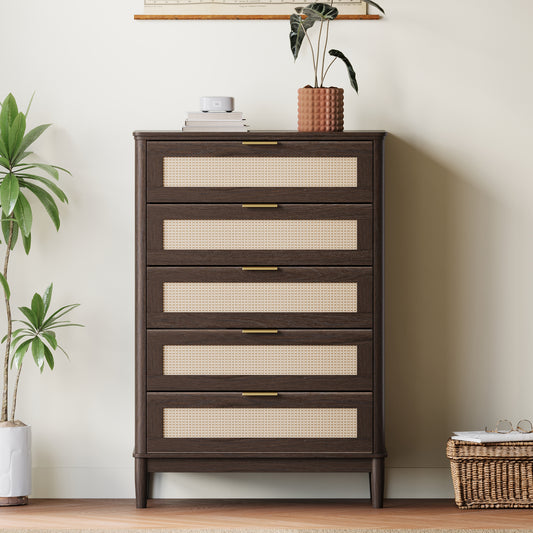 Modern Large Rattan Dresser with Deep Storage Drawers and Metal Pulls for Bedroom or Entryway