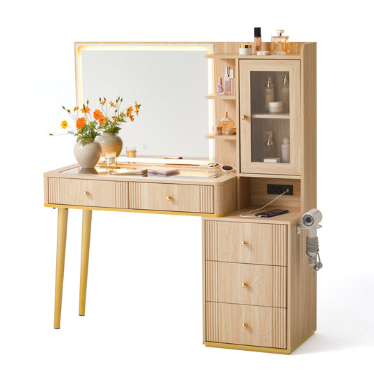Makeup Vanity Desk with Mirror, Adjustable 3-Color LED and Charging Outlet