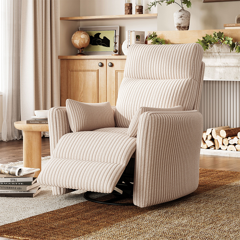 360 Swivel Rocker Recliner - Corduroy Nursery Glider Rocking Chair with 2 Pillows