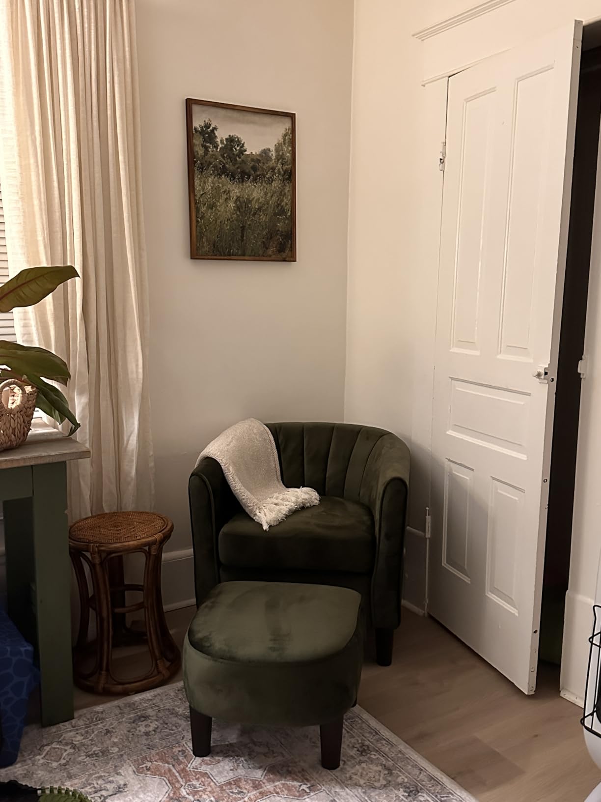 This chair is just what I wanted. Perfect for a small space. Firm but comfortable. I love the green color.