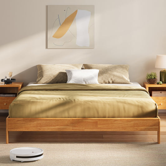 Solid Wood Bed Frame with Headboard, No Box Spring Needed