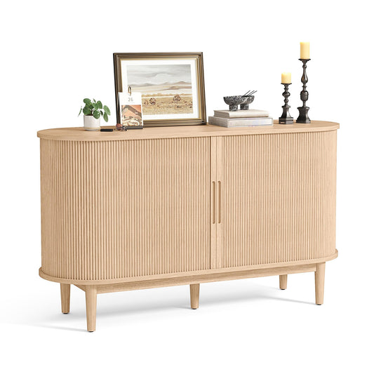 Fluted Sideboard Cabinet with Sliding Tambour Doors, Wide Storage Buffet with Adjustable Shelves for Kitchen, Dining, or Living Room