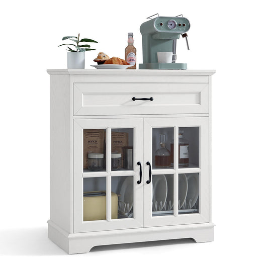 Glass Door Sideboard with Drawer, Adjustable Shelves, and Ample Storage for Kitchen, Dining, or Living Room