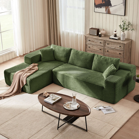 106'' Cloud Sectional Couch - Plush Corduroy Modular Sofa with L-Shape Chaise, Comfy Deep Seat Sofa for Living Room Apartment