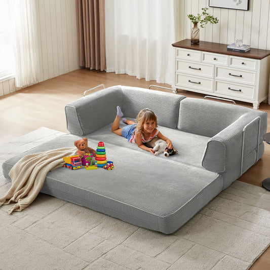 Foldable Sofa Bed, Compressed Sleeper Couch Shipped in a Box, Plush Corduroy, Space-Saving Design for Living Room