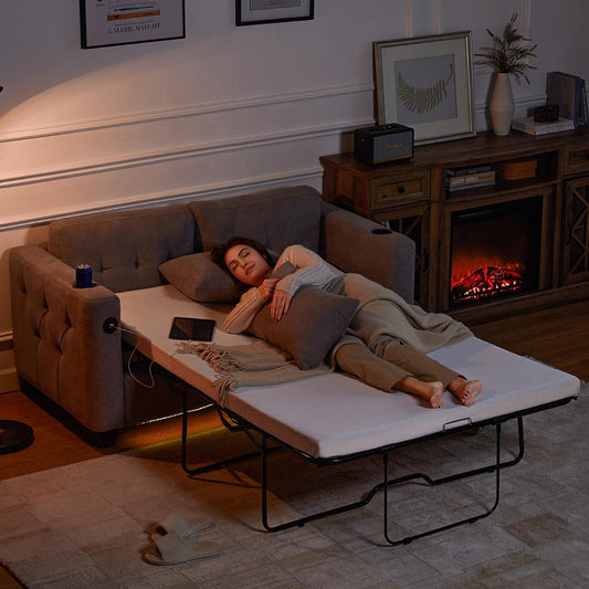 3-in-1 Convertible Sofa Bed, 54" Pull Out Sleeper Sofa with Charging Station & Cup Holder