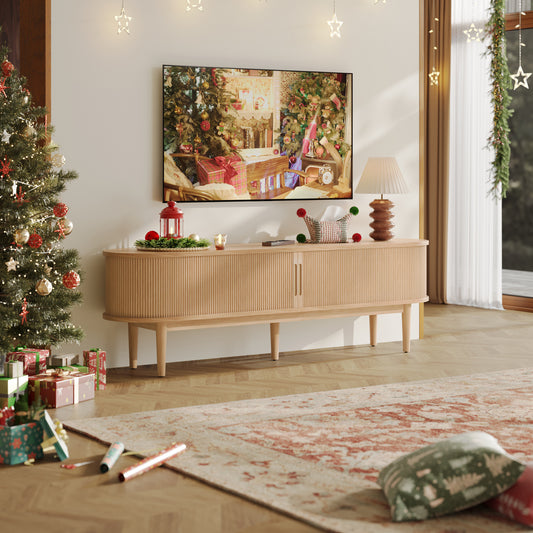Fluted TV Stand for 65" TVs, Mid-Century Entertainment Center with Sliding Tambour Door & Adjustable Shelves
