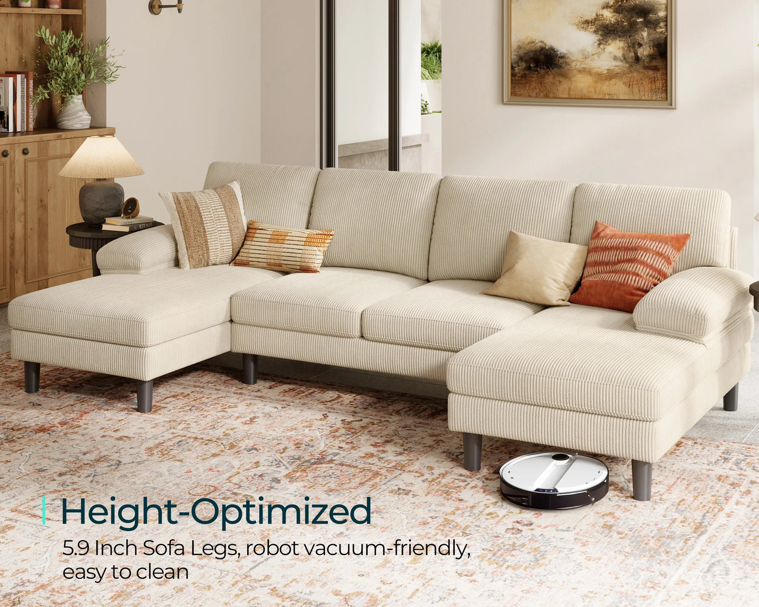 111.02" Corduroy Fabric U-Shaped Sectional Sofa, 4-Seat Sofa Set for Living Room
