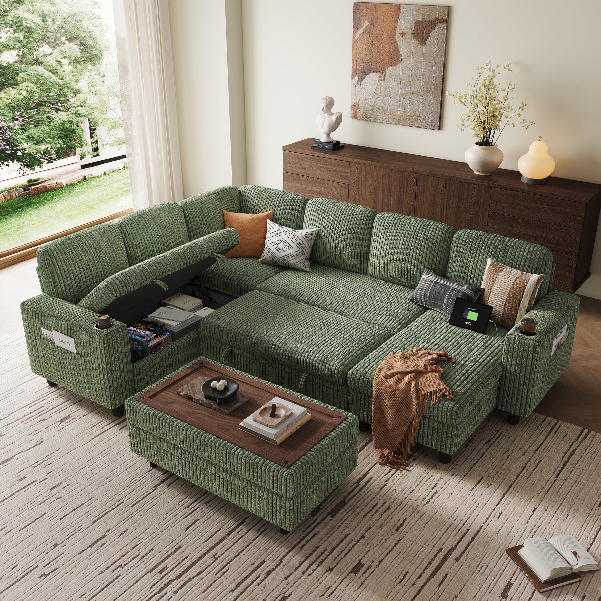 Designed with everyday living in mind, this sofa includes a USB charging port for easy power access, storage pockets for remotes or magazines, and integrated cup holders to keep drinks secure. A thoughtful setup that brings more convenience to your routines.