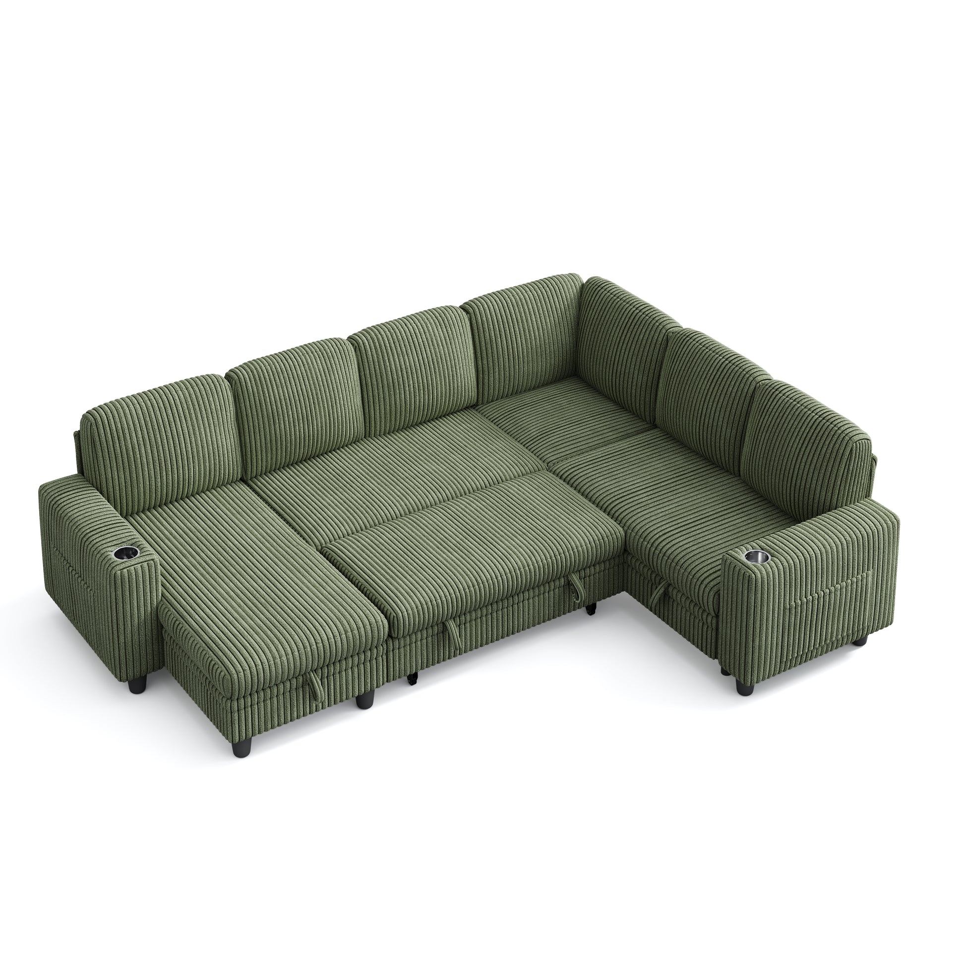 6 Seats with 2 Ottomans, Convertible Plush Corduroy Cloud Couch