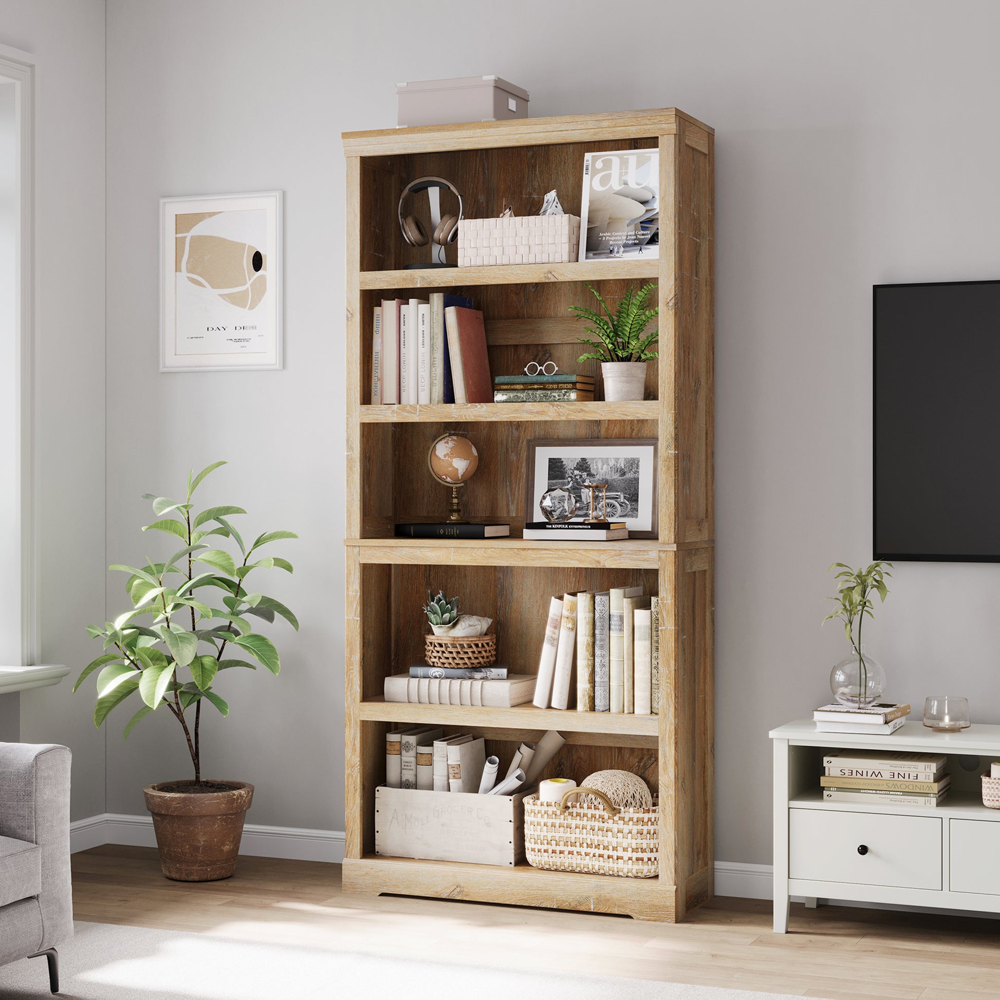 68 in 5 Tier Bookshelf, Tall Bookcase Shelf Storage Organizer, Modern Book Shelf for Bedroom