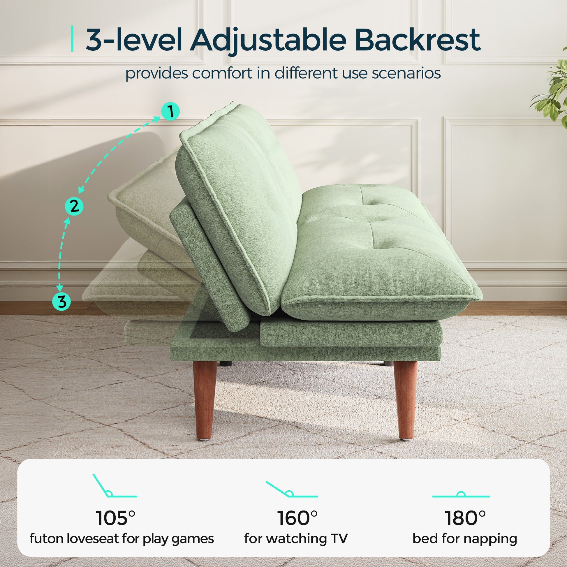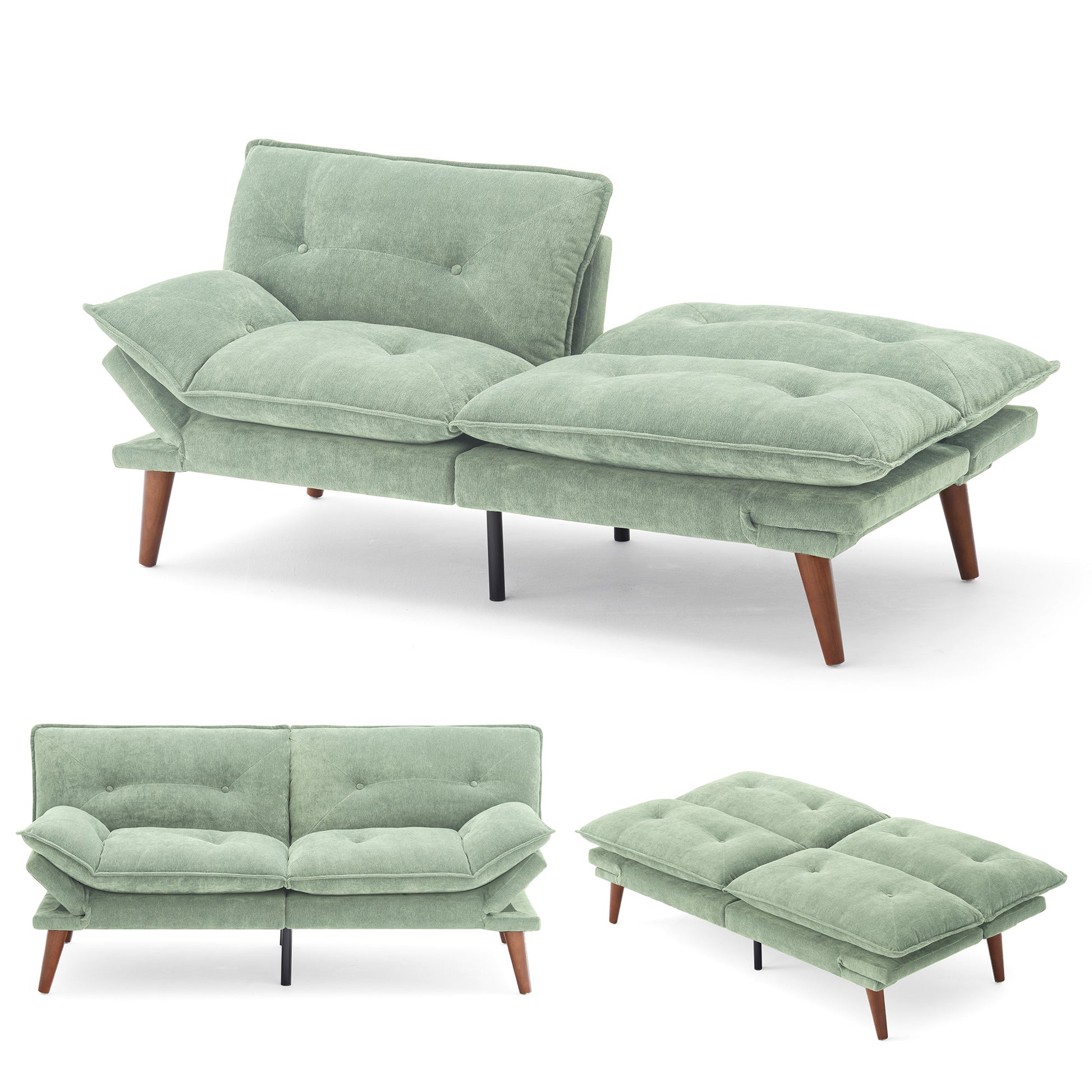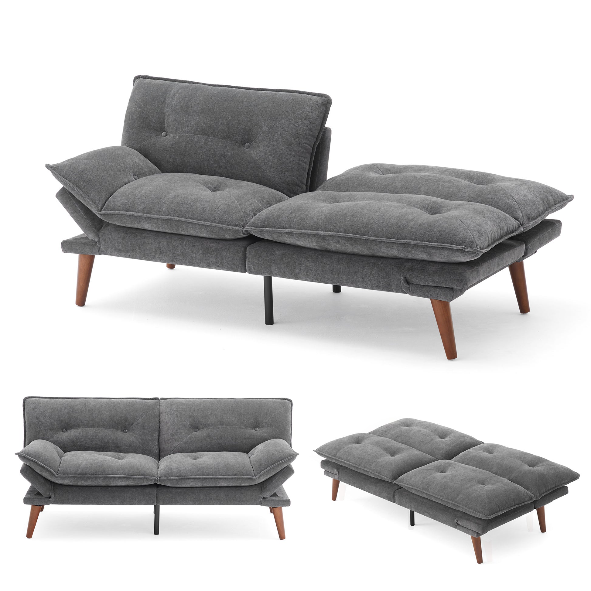 70" Chenille Futon, Convertible Loveseat Sleeper Sofa with Adjustable Backrest and Armrest for Small Spaces and Living Rooms