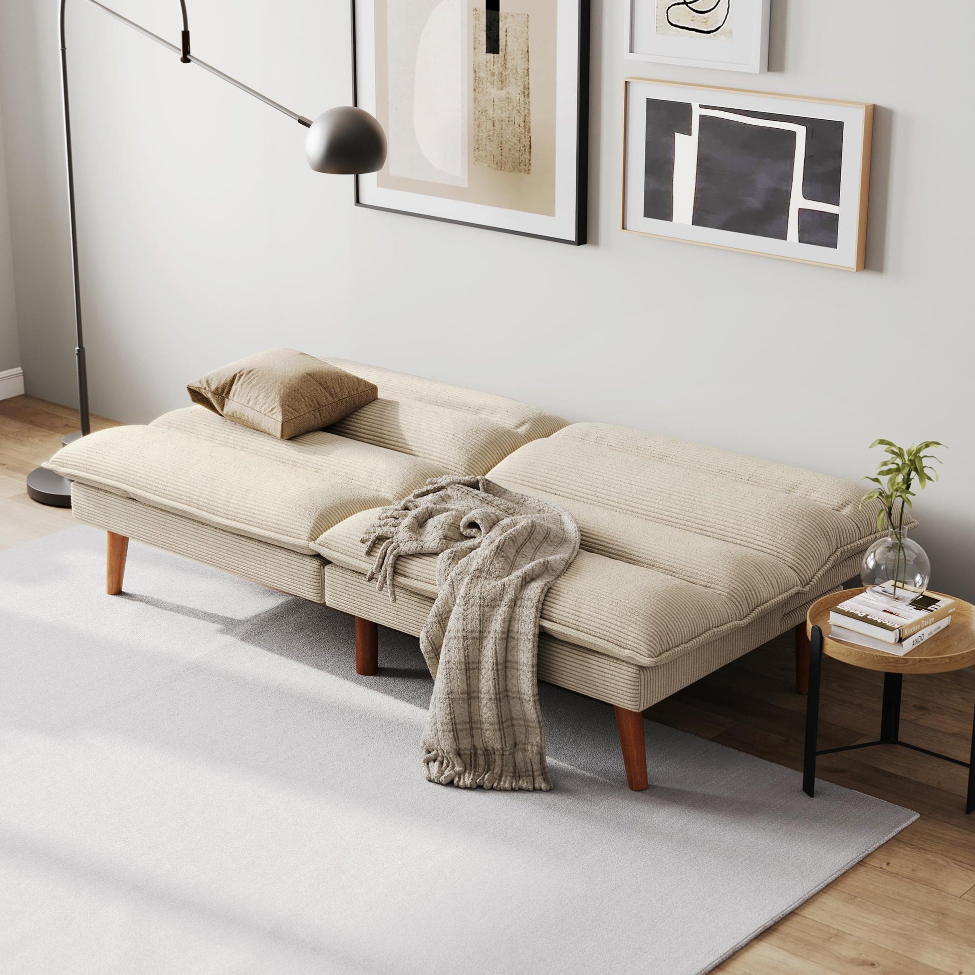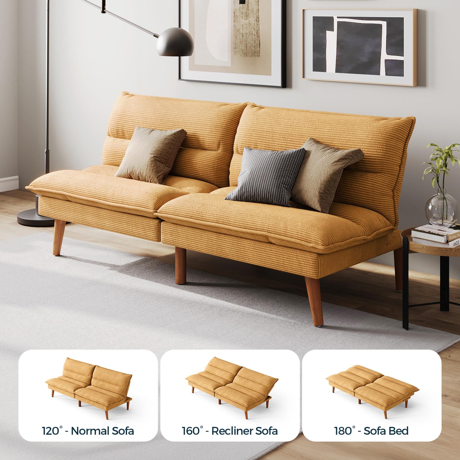 Experience the ultimate in relaxation with our new corduroy fabric futon couch. The 7-inch thick doll cotton padding provides unparalleled softness and comfort, making the small futon bed a cozy spot for lounging, napping, or overnight guests.