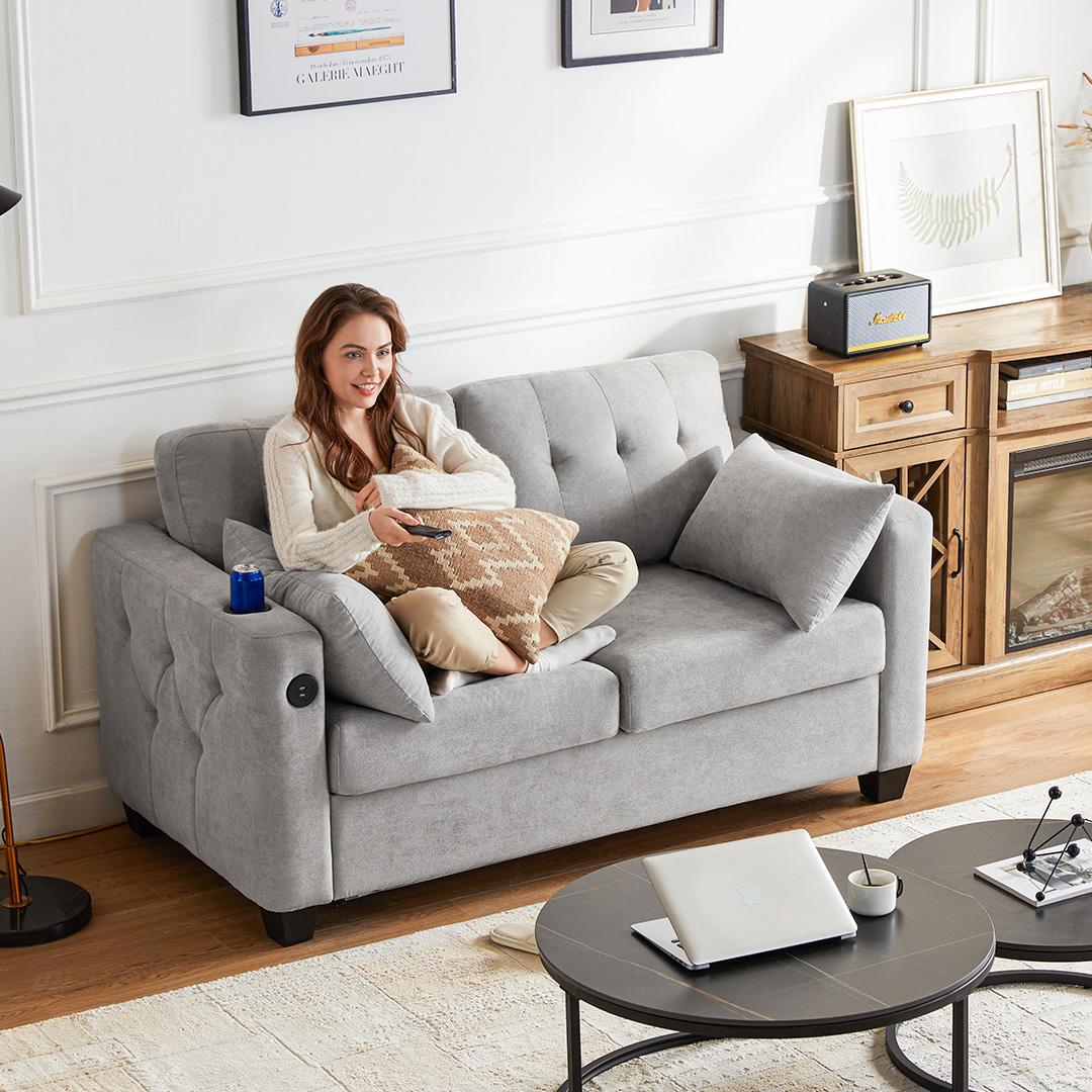Discover the ultimate in comfort and functionality with our sofa bed equipped with USB charging ports and convenient cup holders. Whether you're enjoying a movie night or accommodating overnight guests, this sofa bed offers the perfect combination of style, comfort, and convenience for your living space.