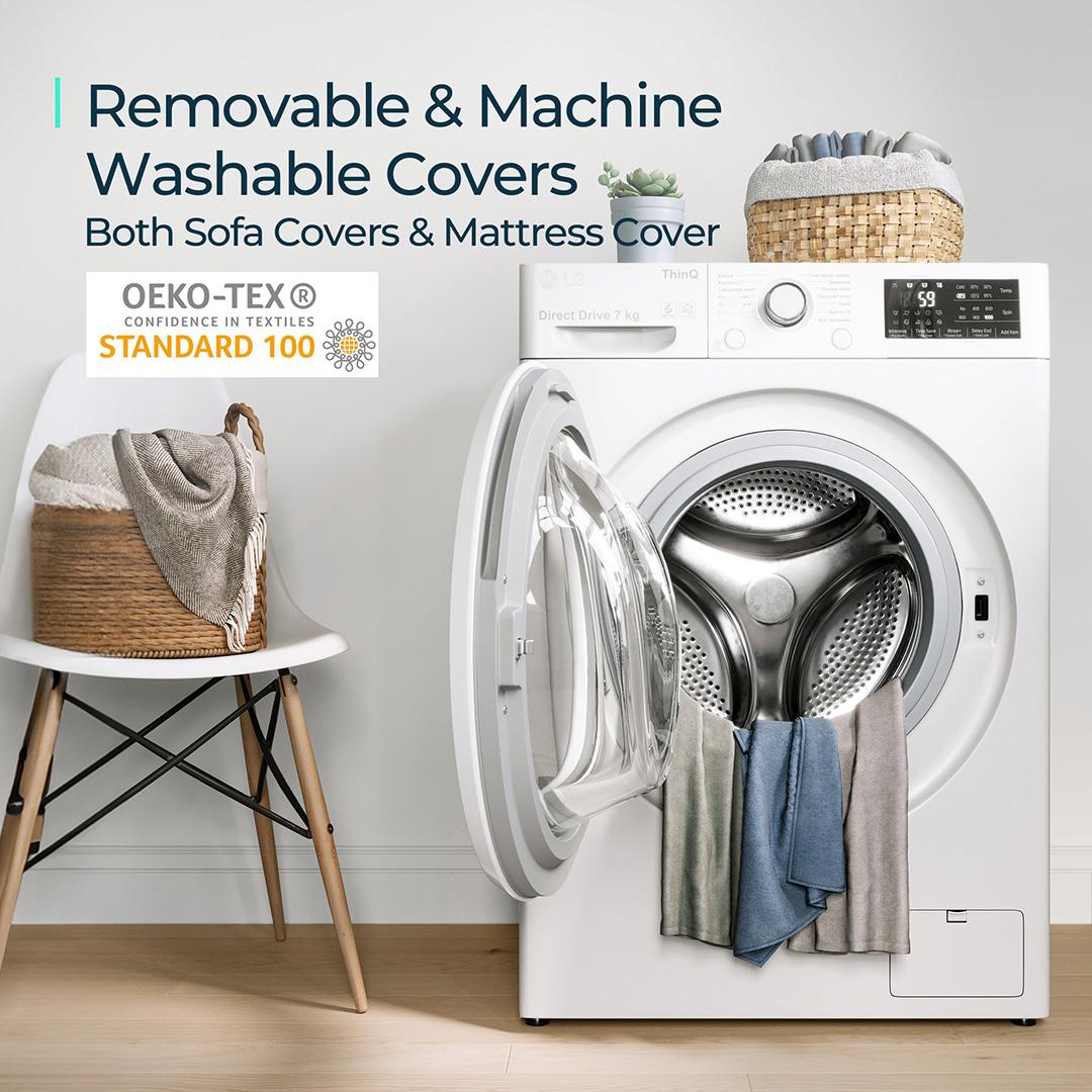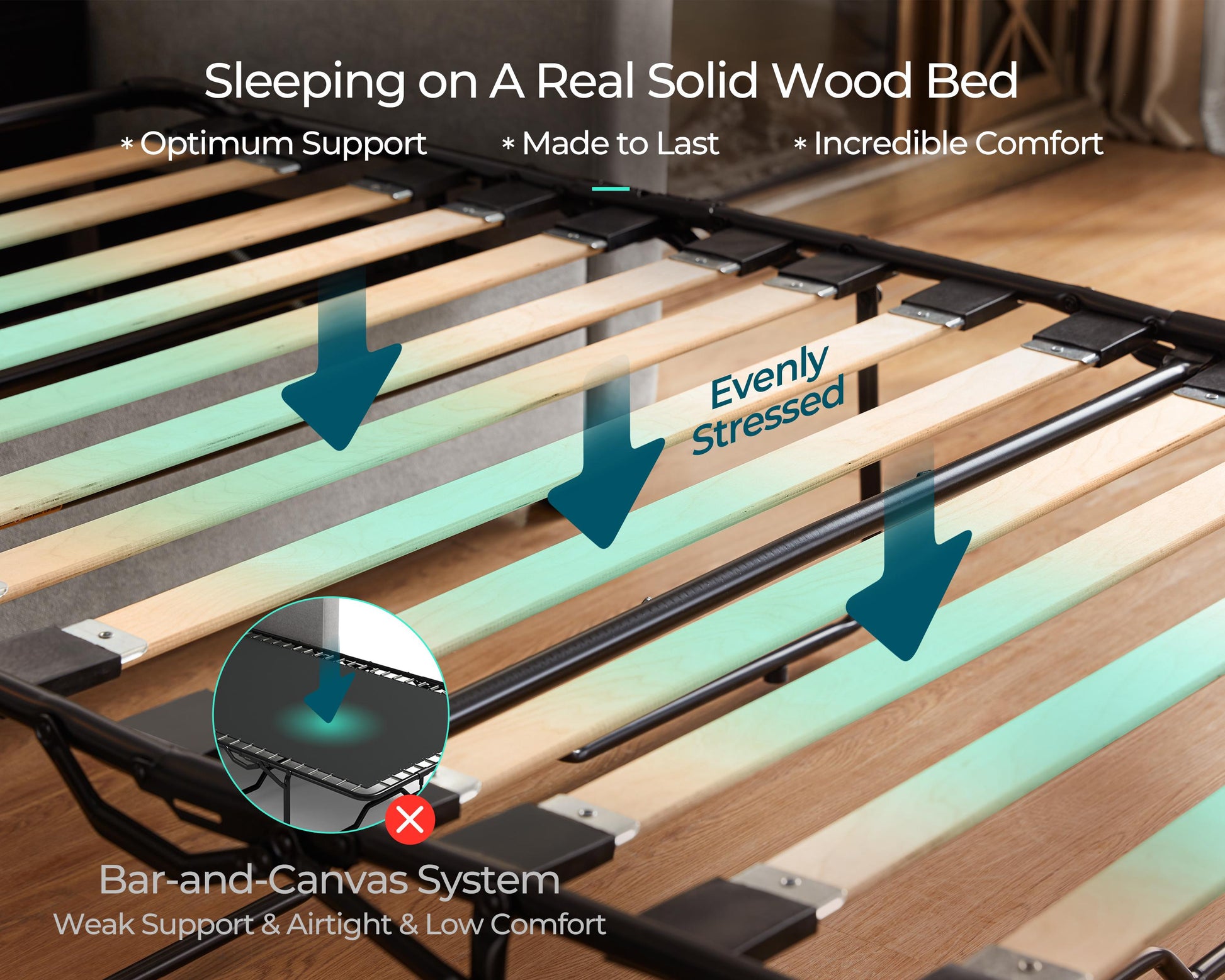 This sofa bed has a solid and tough gene inside its solid steel frame and rib-like solid wood slats. It can withstand over 500 lbs in weight without making wiggling motions. The 3-inch deep memory foam can be folded and unfolded easily while hugging your body from head to toe and spreading stress evenly.