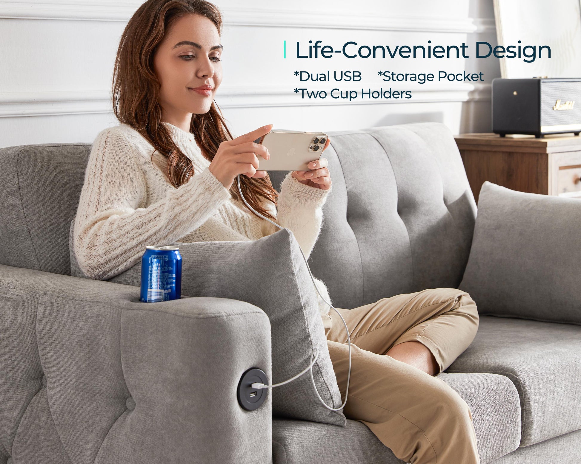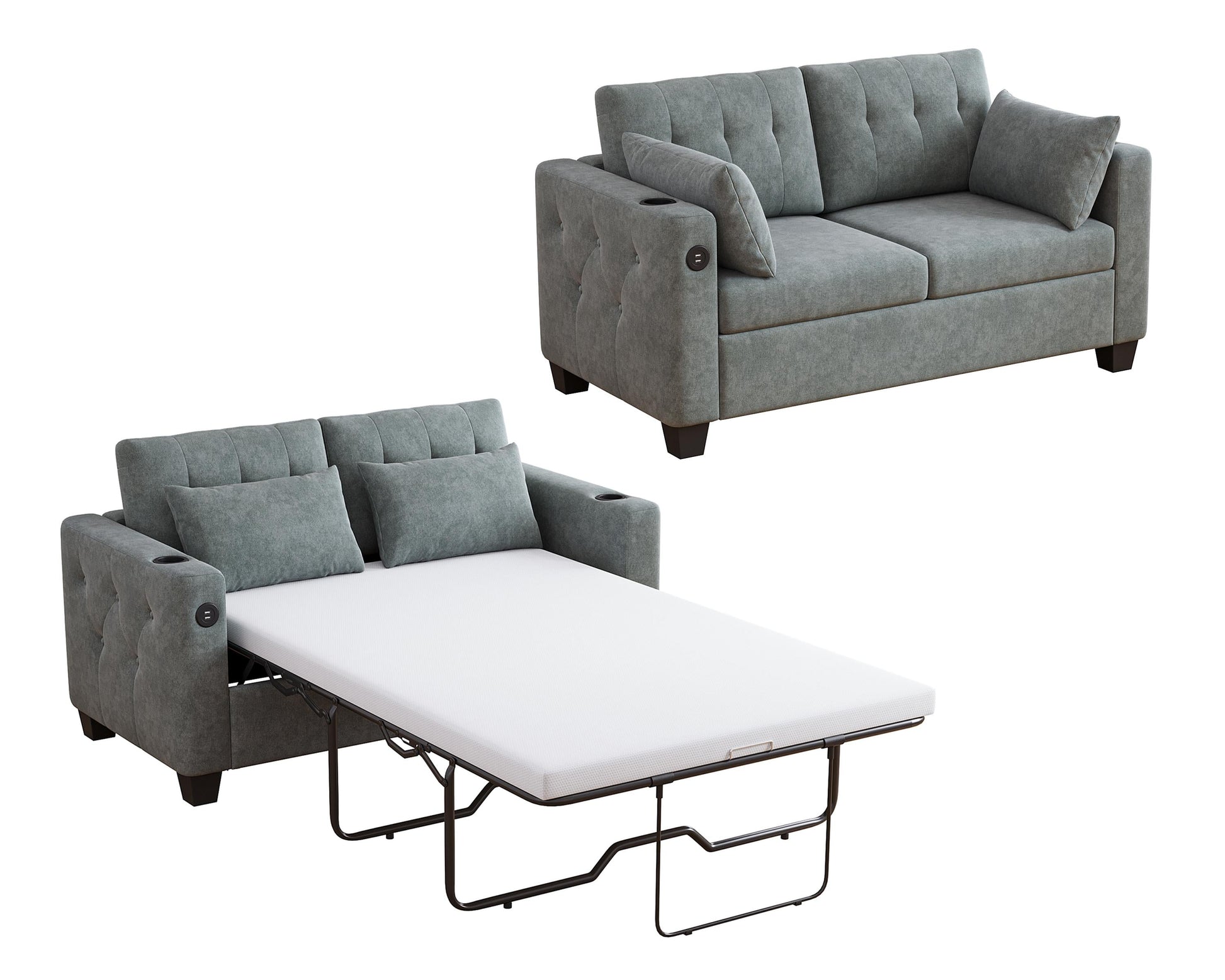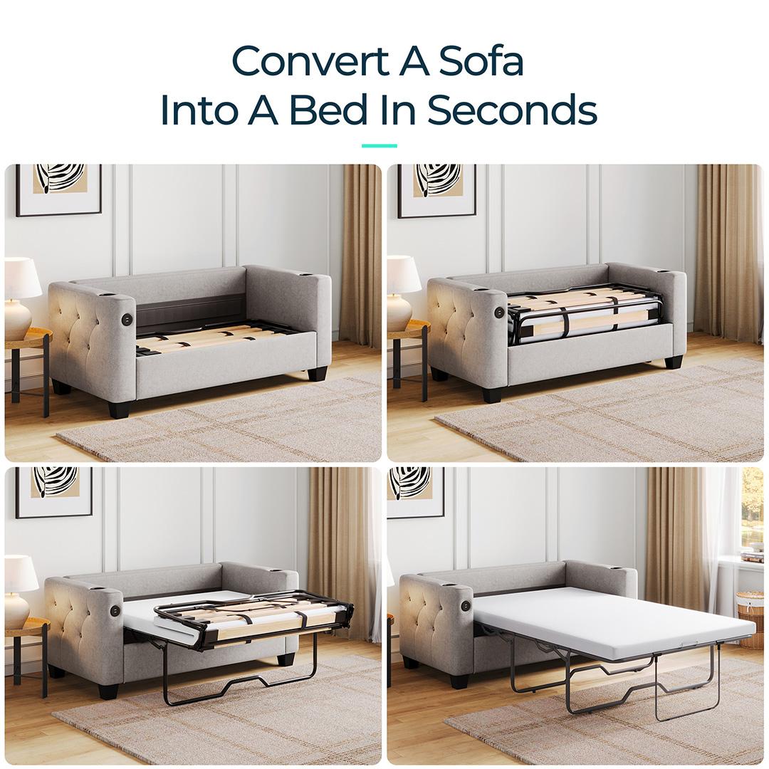 Convertible Sofa Bed with USB Ports and Cup Holders