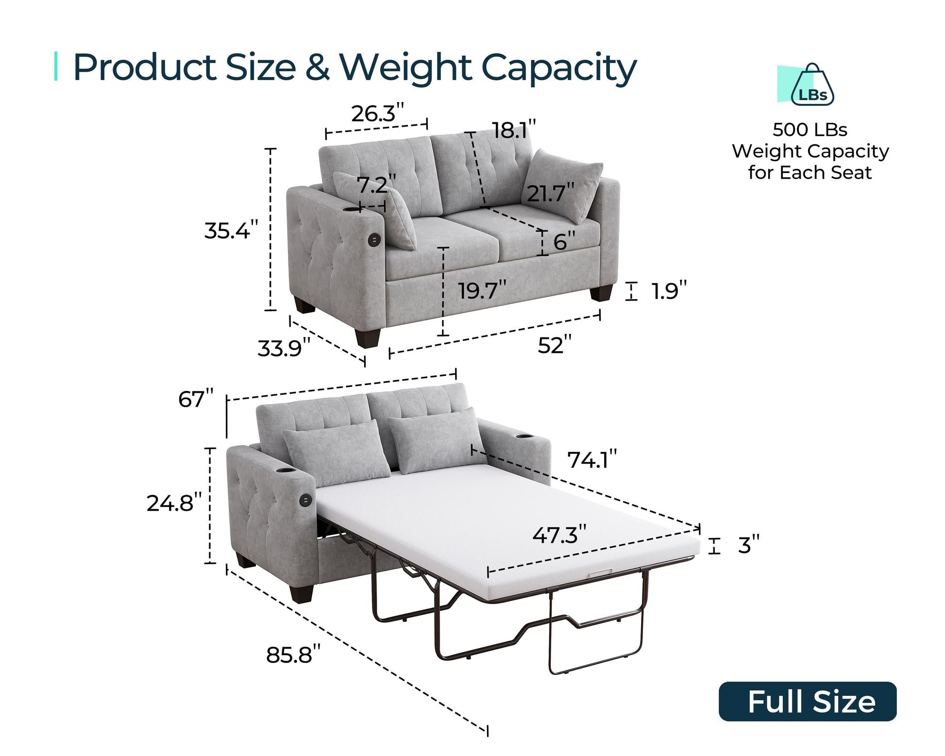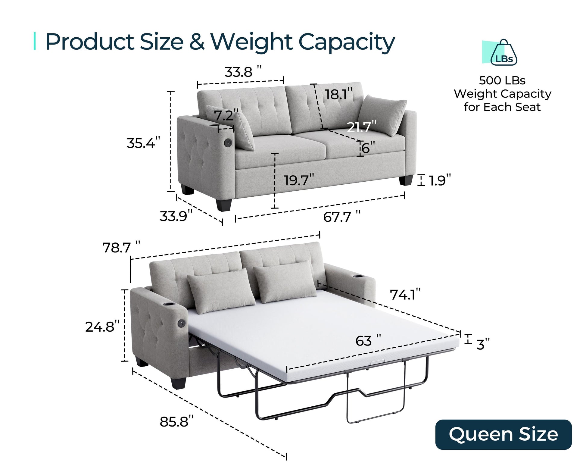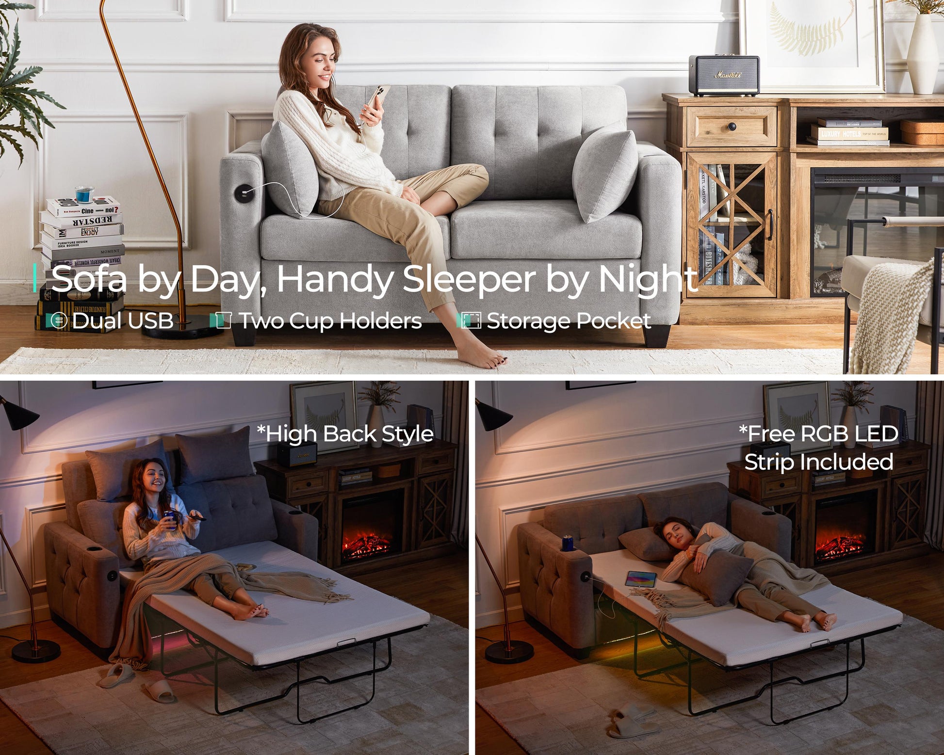 Convertible Sofa Bed with USB Ports and Cup Holders