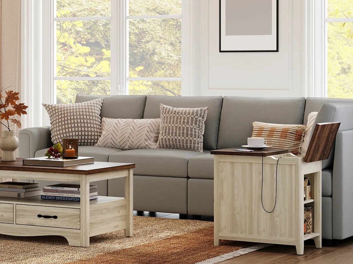 Keep your devices charged and organized with this end table, featuring a safety switch, 3 outlets and 2 USB ports. Designed grooves from two sides for cables to keep the desk neater.