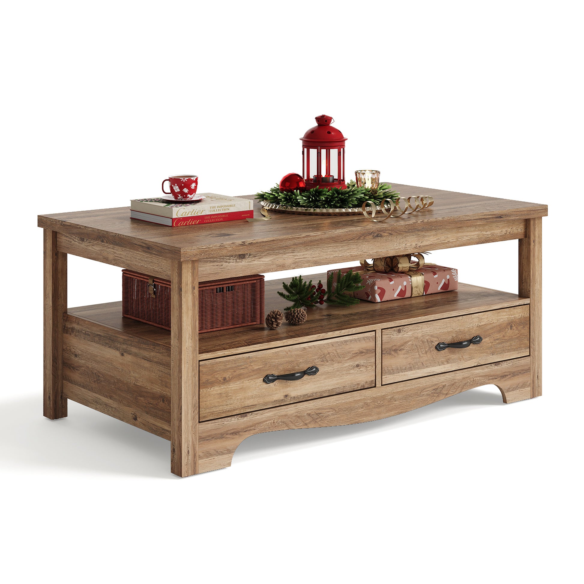 Farmhouse Coffee Table with Drawers, Rustic Living Room Storage
