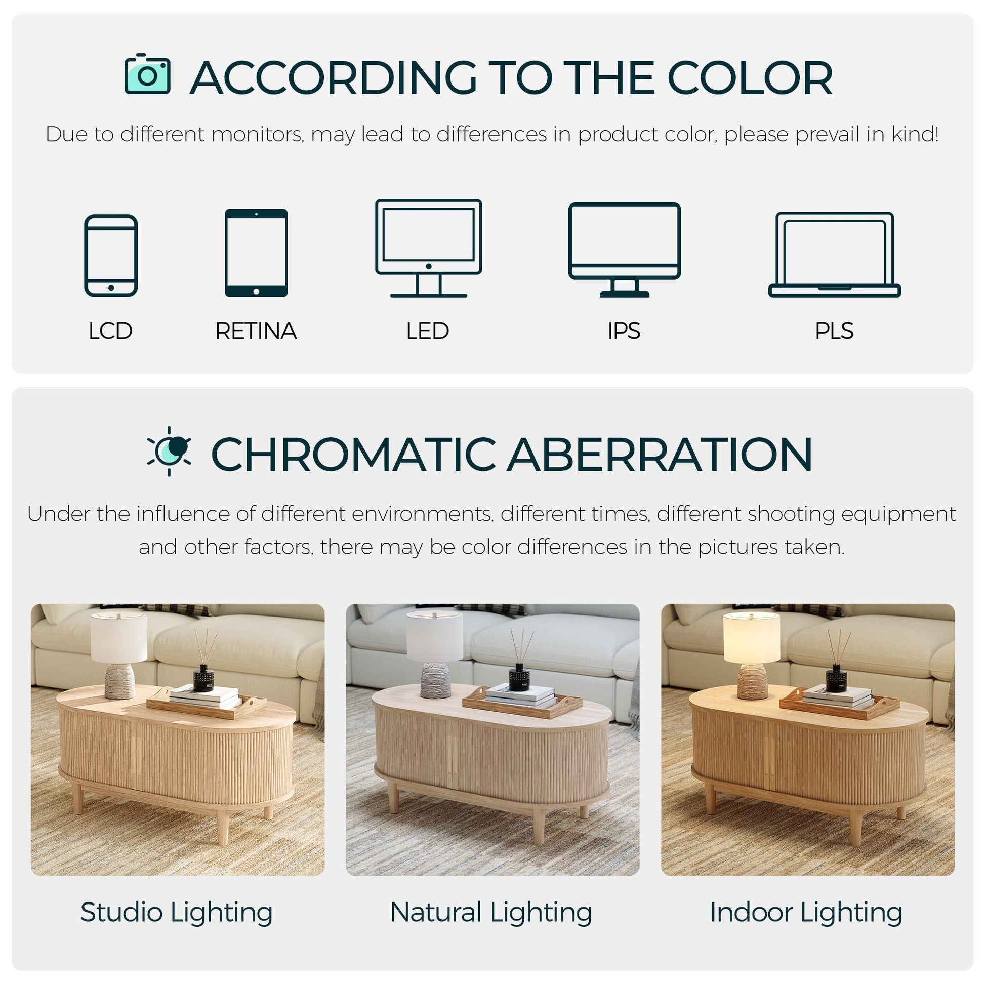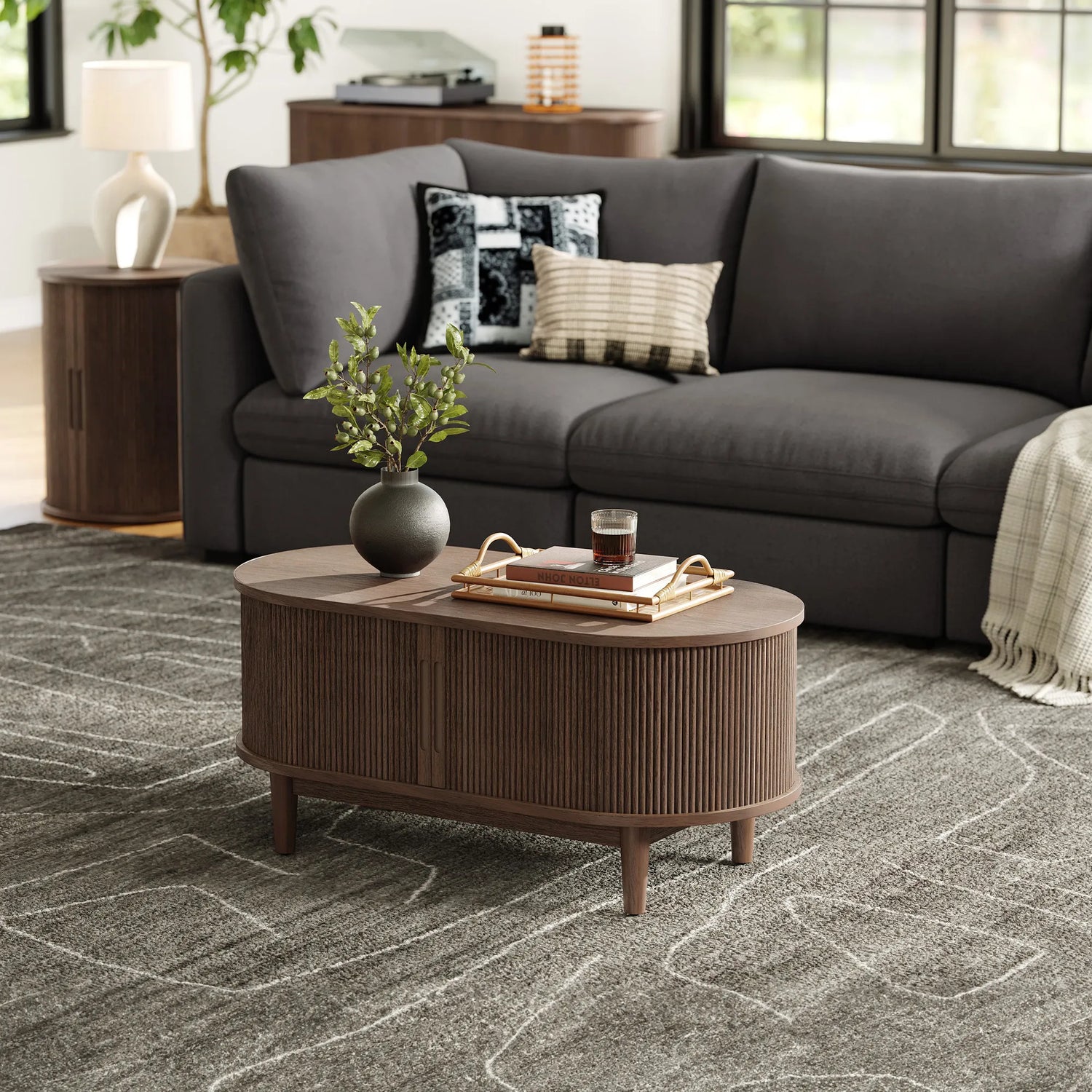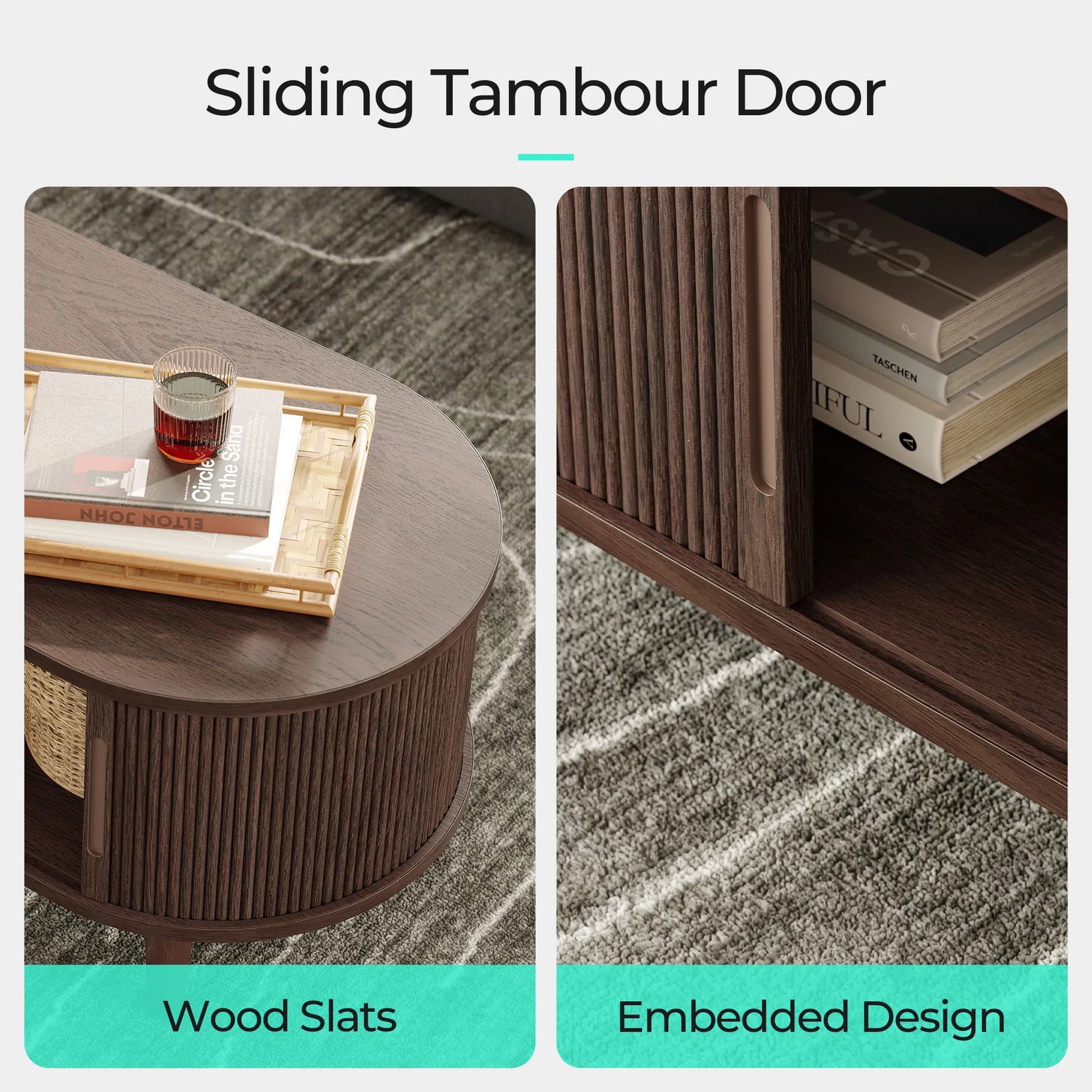 Fluted Coffee Table with Storage, Mid-Century Coffee Table for Living Room with Sliding Tambour Door