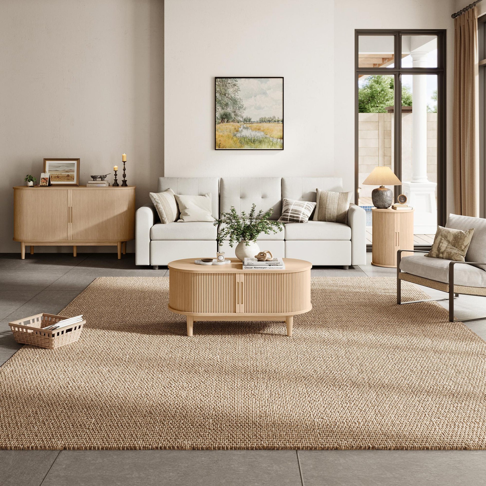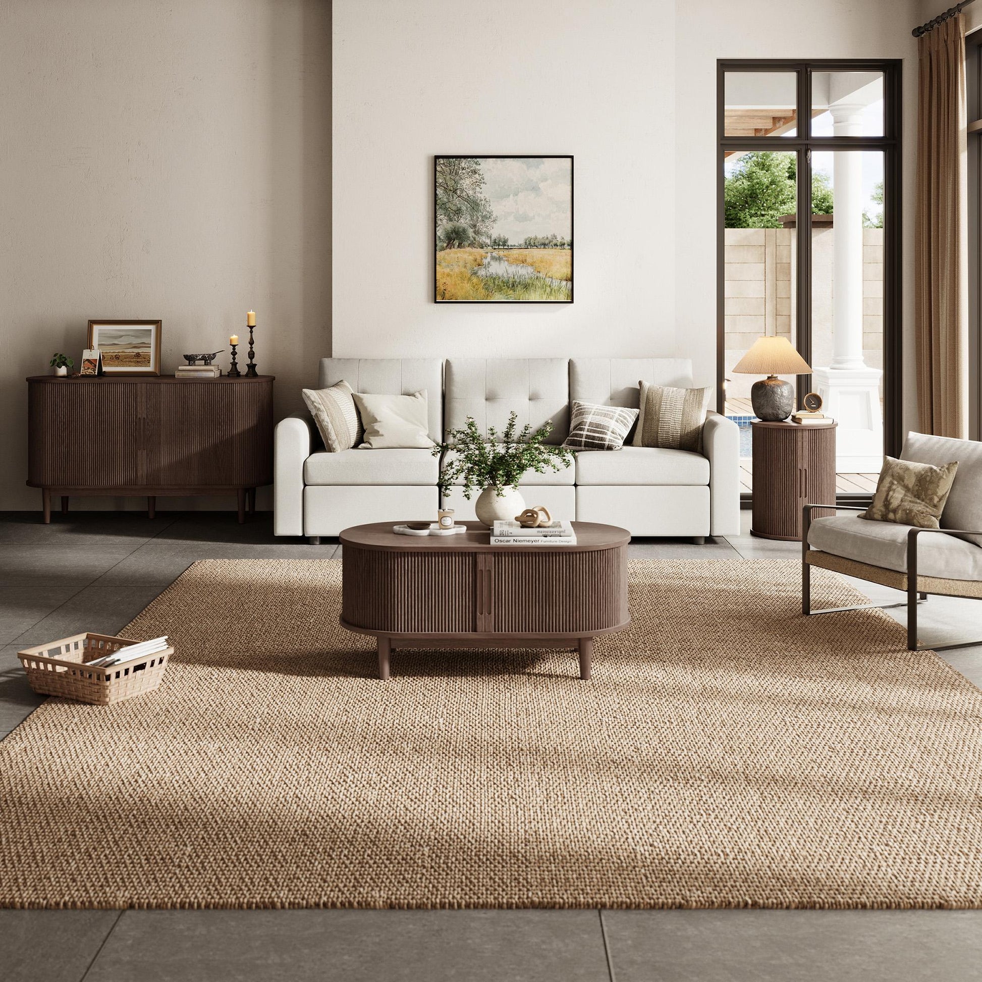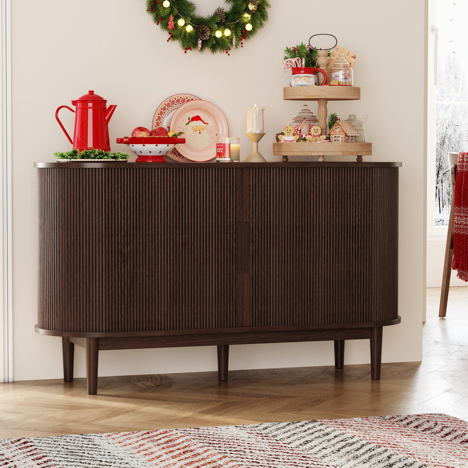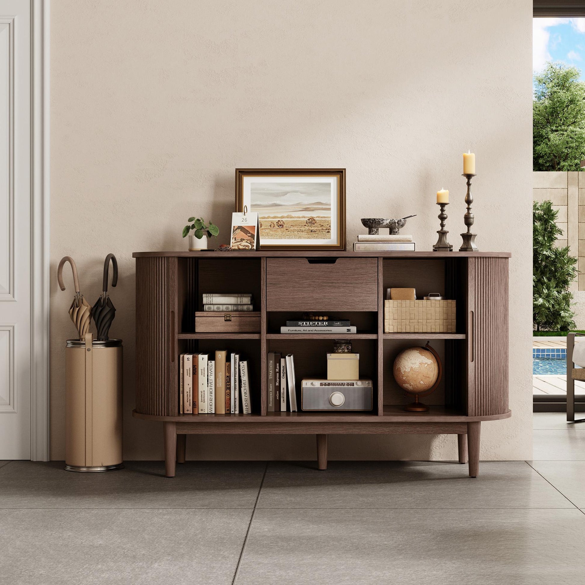The curved, fluted tambour door glides smoothly for easy access to essentials, and combined with the natural wood color, this sideboard cabinet provides practical storage space while adding a touch of mid-century modern elegance to your home
