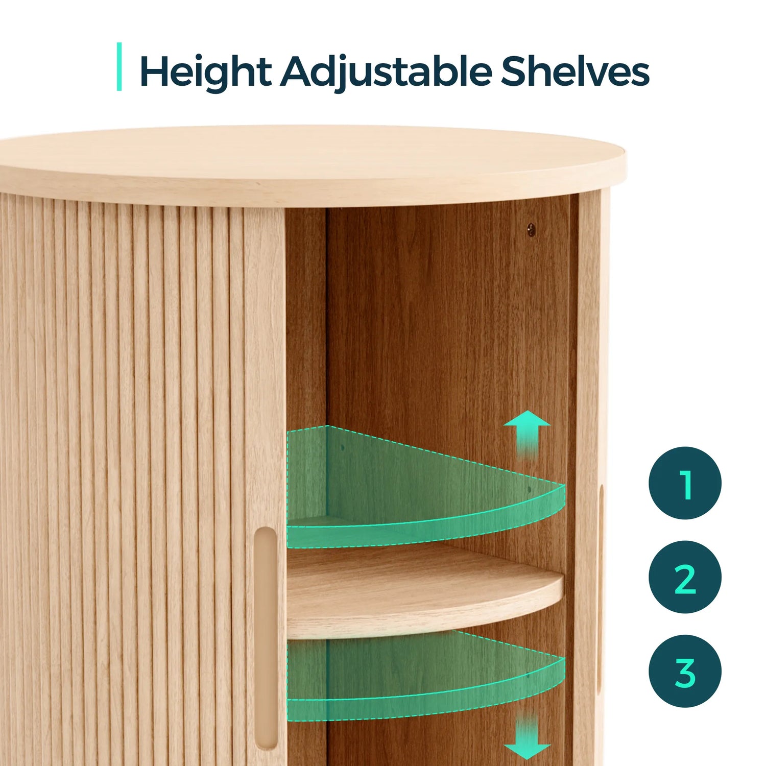 Fluted Round End Table for Living Room or Bedroom, Nightstand with Sliding Tambour Door and Adjustable Shelves