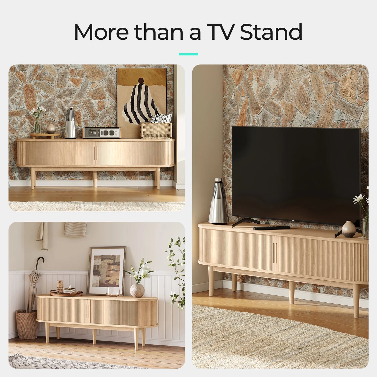 Fluted TV Stand for 65" TVs, Mid-Century Entertainment Center with Sliding Tambour Door & Adjustable Shelves