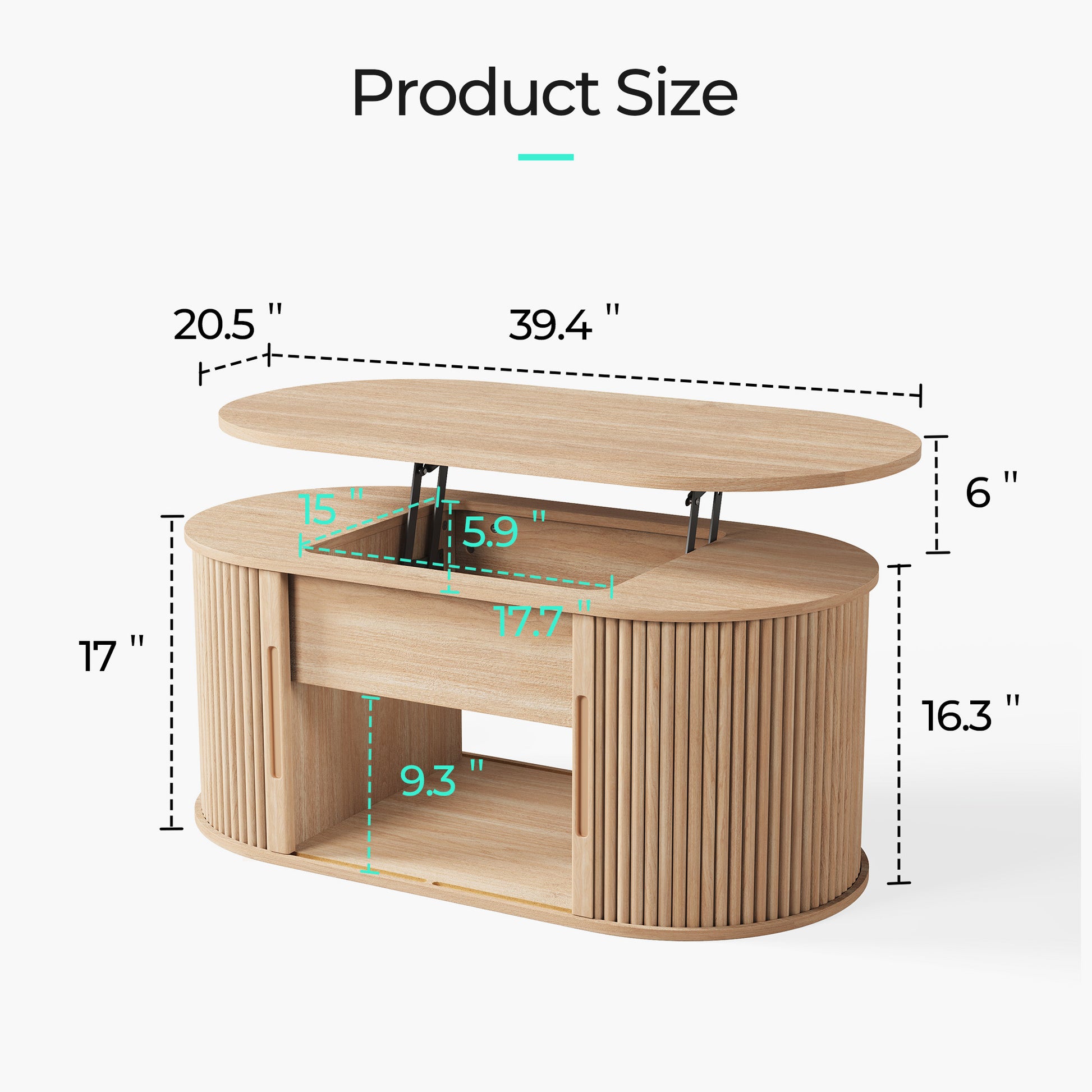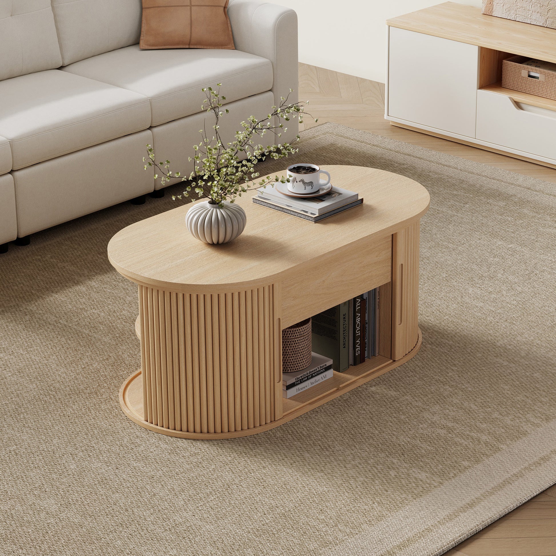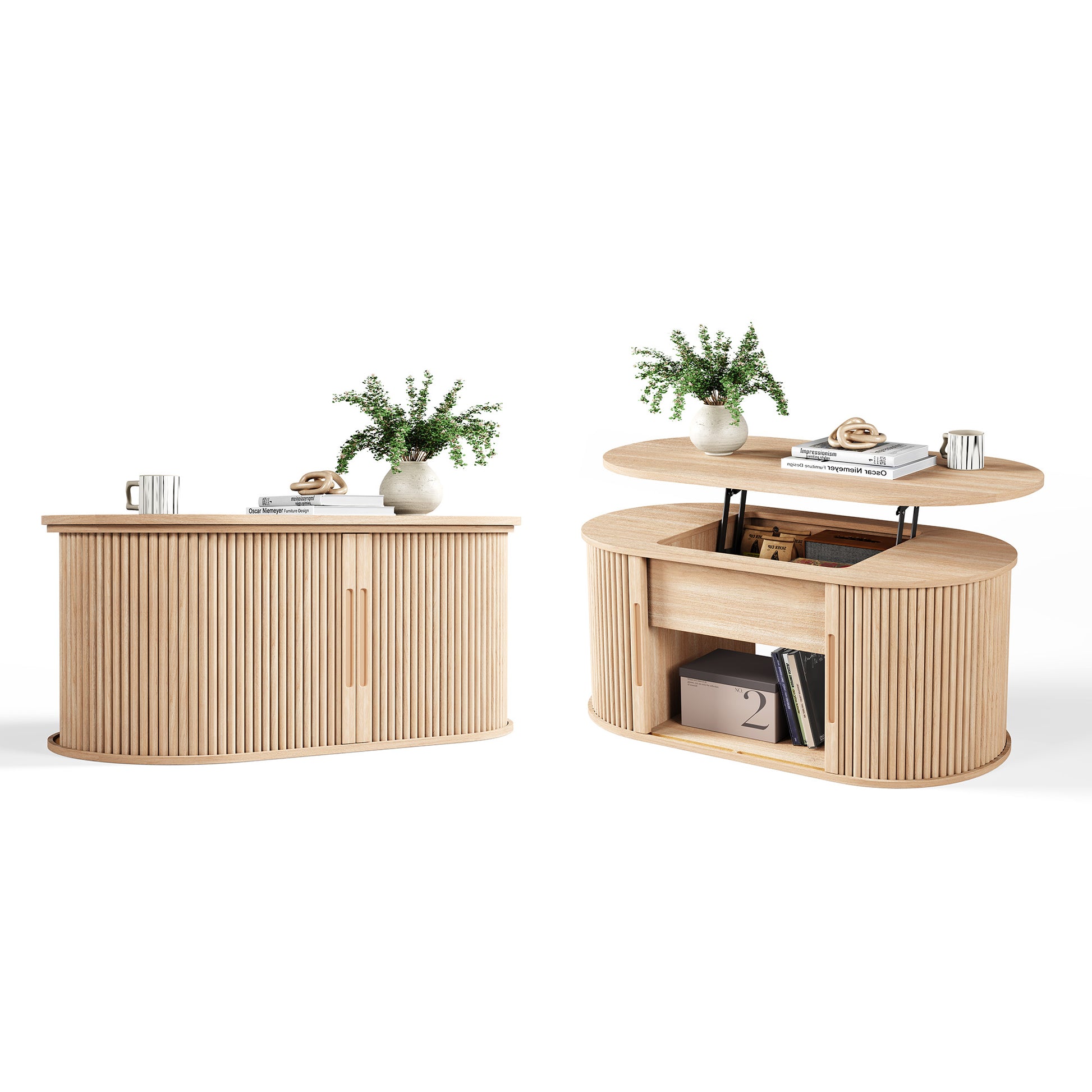 Mid-Century Lift-Top Coffee Table with Fluted Details & Hidden Storage, Sliding Tambour Door
