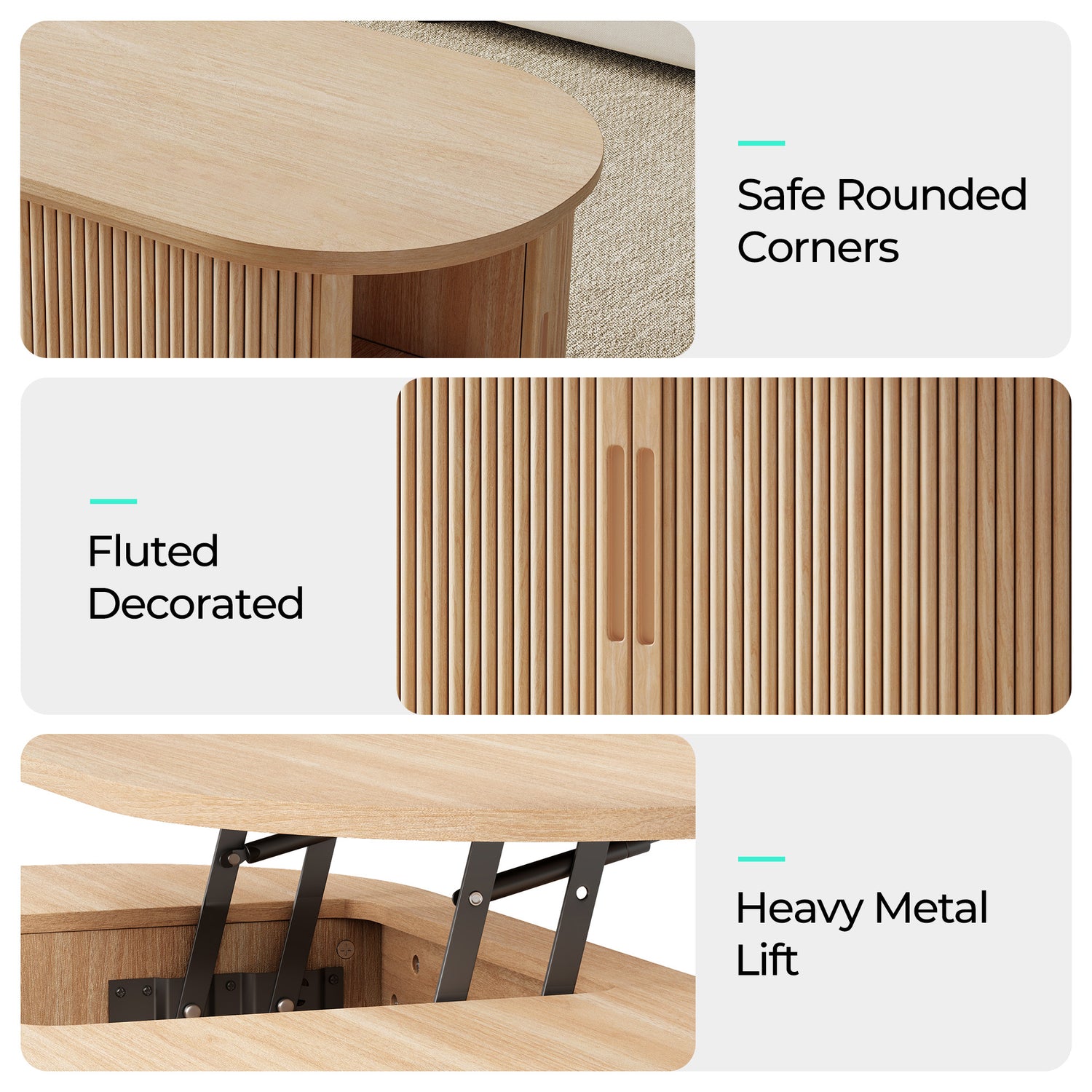 Bring mid-century style and smart function to your home with this lift-top coffee table — fluted detail, hidden storage, and effortless versatility.