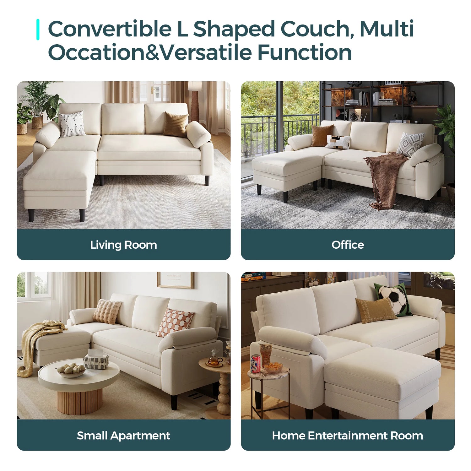 82" Reversible L-Shaped Sectional Sofa with Movable Ottoman, 3-Seater Couch for Living Room