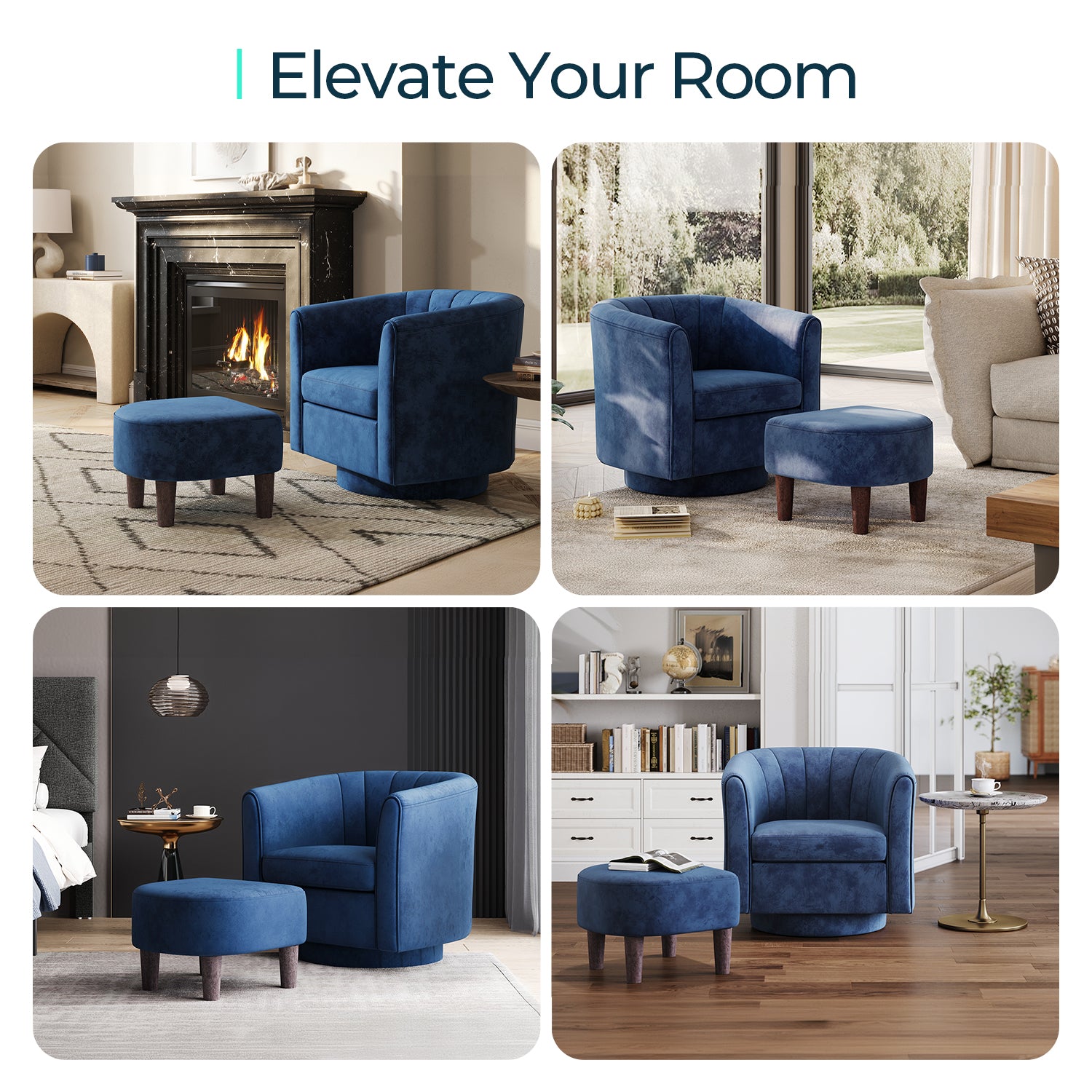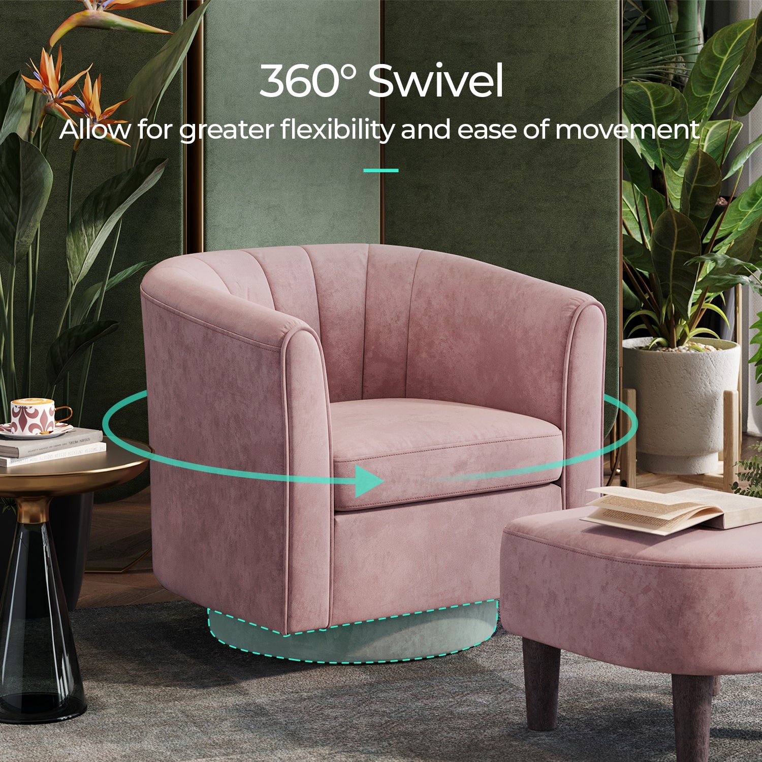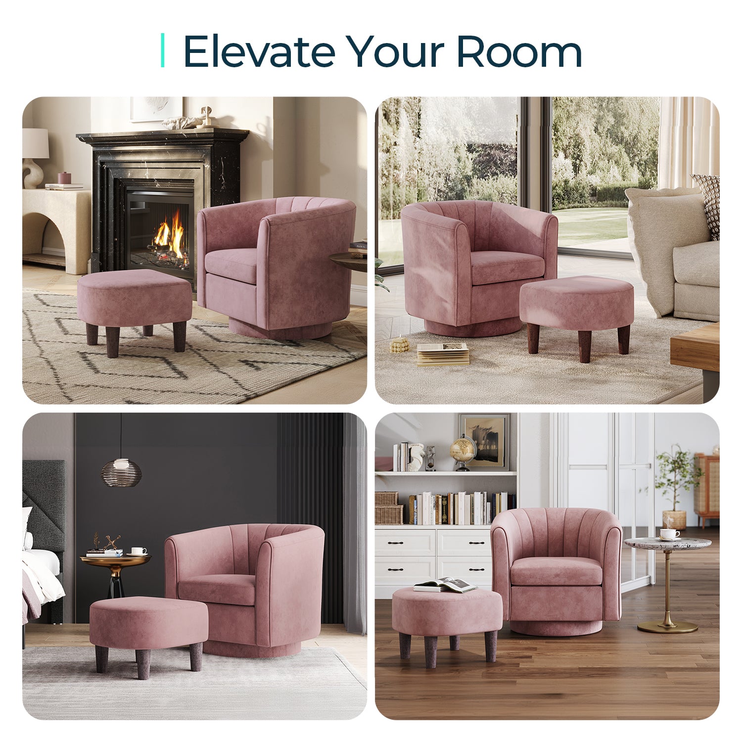 Swivel Accent Chair with Ottoman, Velvet Barrel Chair for Living Room