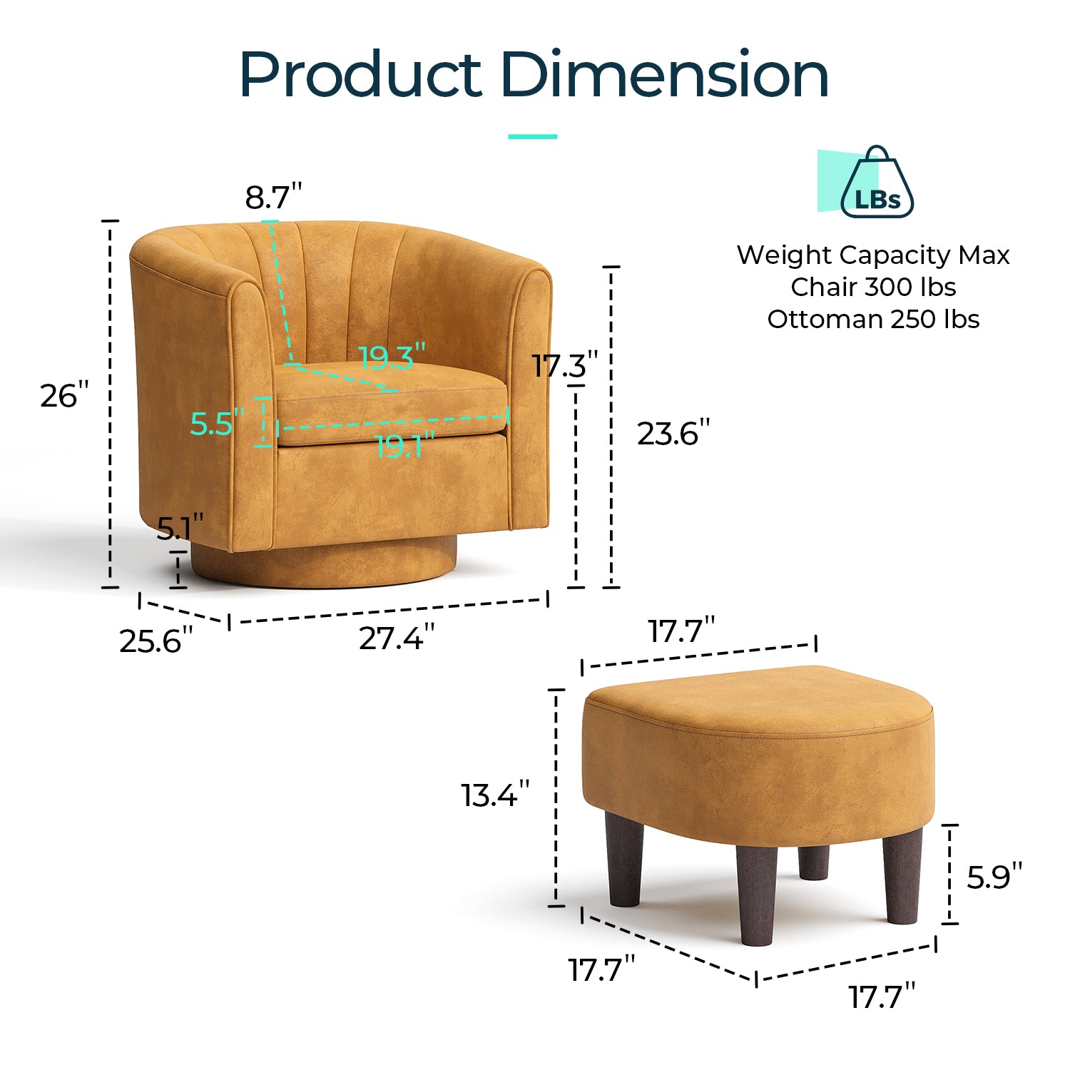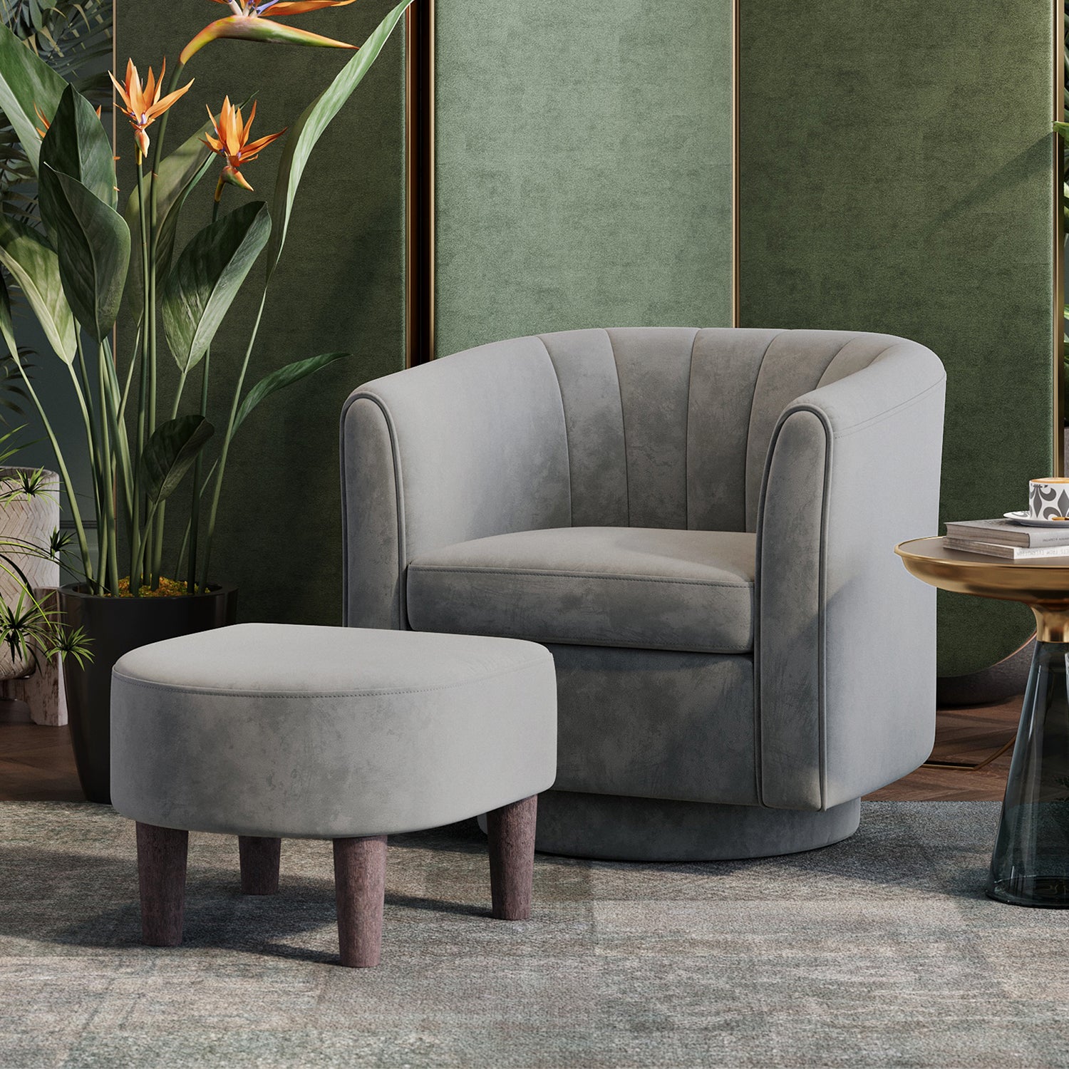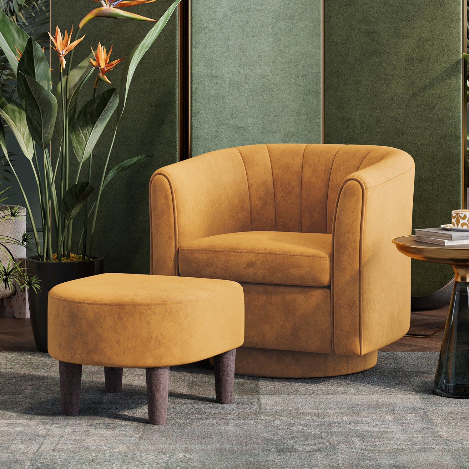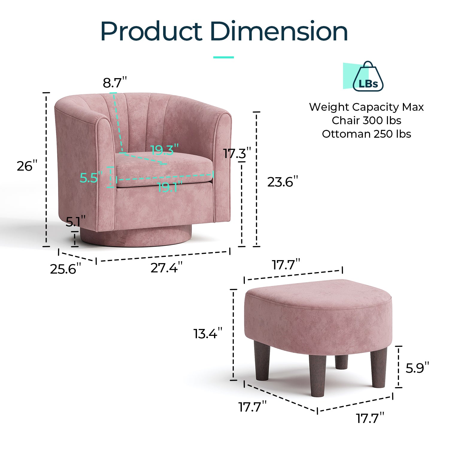 Swivel Accent Chair with Ottoman, Velvet Barrel Chair for Living Room