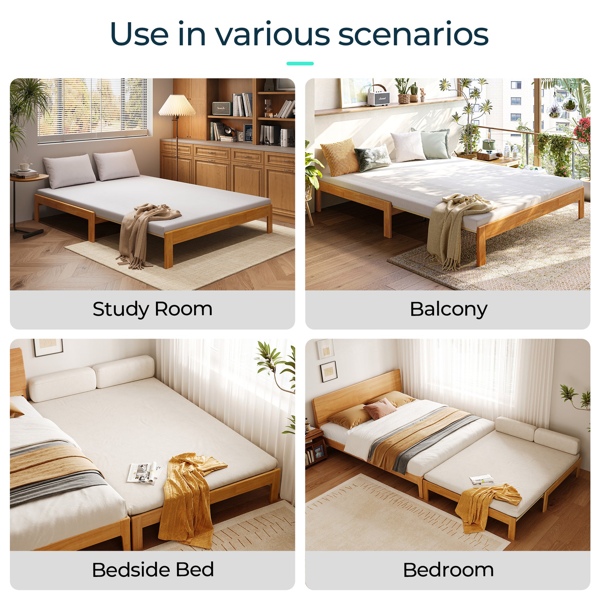 This retractable bed frame adjusts from 45 to 82.9 inches, eliminating gaps to keep mattress and sheets secure for a quiet sleep. Ideal for small spaces, it easily converts between queen, kids’, or daybed to fit your needs.